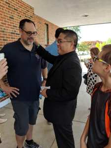 Coffee, donuts and fellowship on the portico