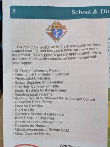 Since our reactivation in 2013 we have been blessed to help so many worthy causes and people in need. We could not have done it without the help and support of our Saint Bridget’s University Parish parishioners whom we have recognized this week in the bulletin.